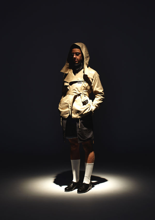 ドレススタイルを軸にアウトドアアイテムのディテールをドッキングさせたスタイルとして提案させて頂きました。